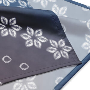 Original shibori fabrics, created through traditional resist-dye techniques,