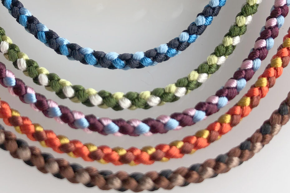 Maru Yotsu-gumi is a traditional 4-strand round kumihimo braid often introduced in beginner braiding classes.