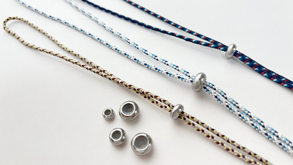 Cord thickness, bead hole size, material friction, and weight all influence performance. In particular, thicker silk cords—around 1.5 mm in diameter—do not fit or move smoothly through many standard or decorative slider beads.