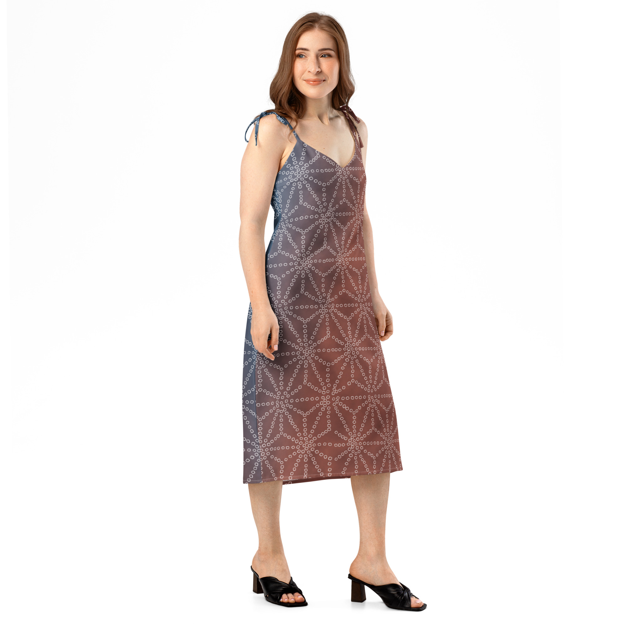 Floaty, flirty, and totally flattering—from daytime garden parties to dinner dates. This midi dress features a breezy side slit, adjustable tie straps, and a built-in bra for no-fuss style.