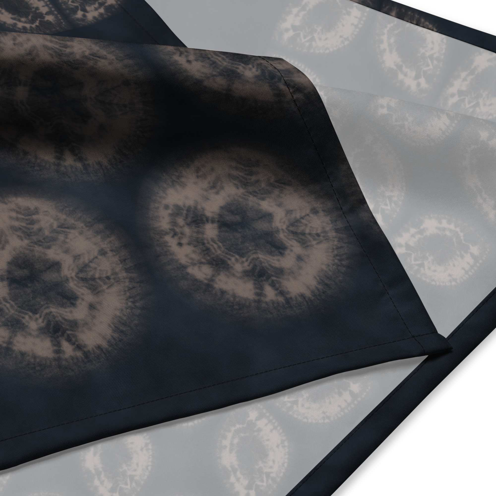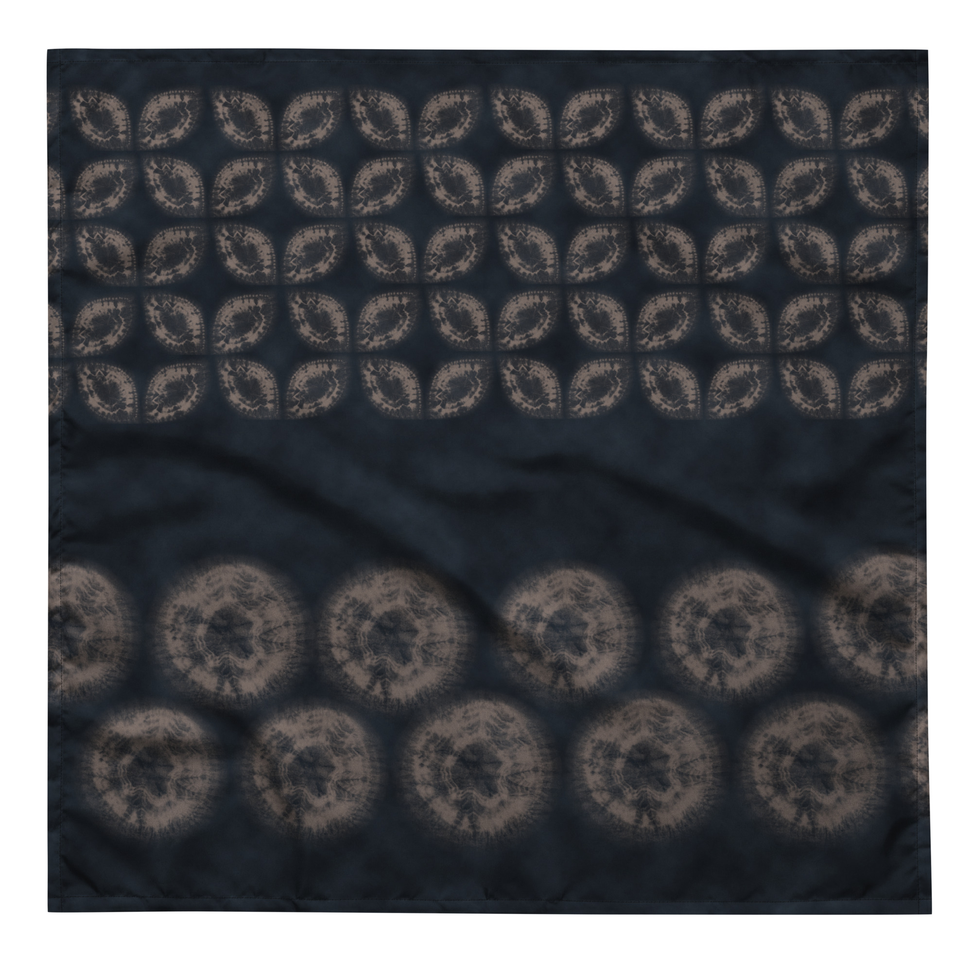 This furoshiki bandana features an original shibori-inspired pattern developed from the artist’s own hand-dyed samples.