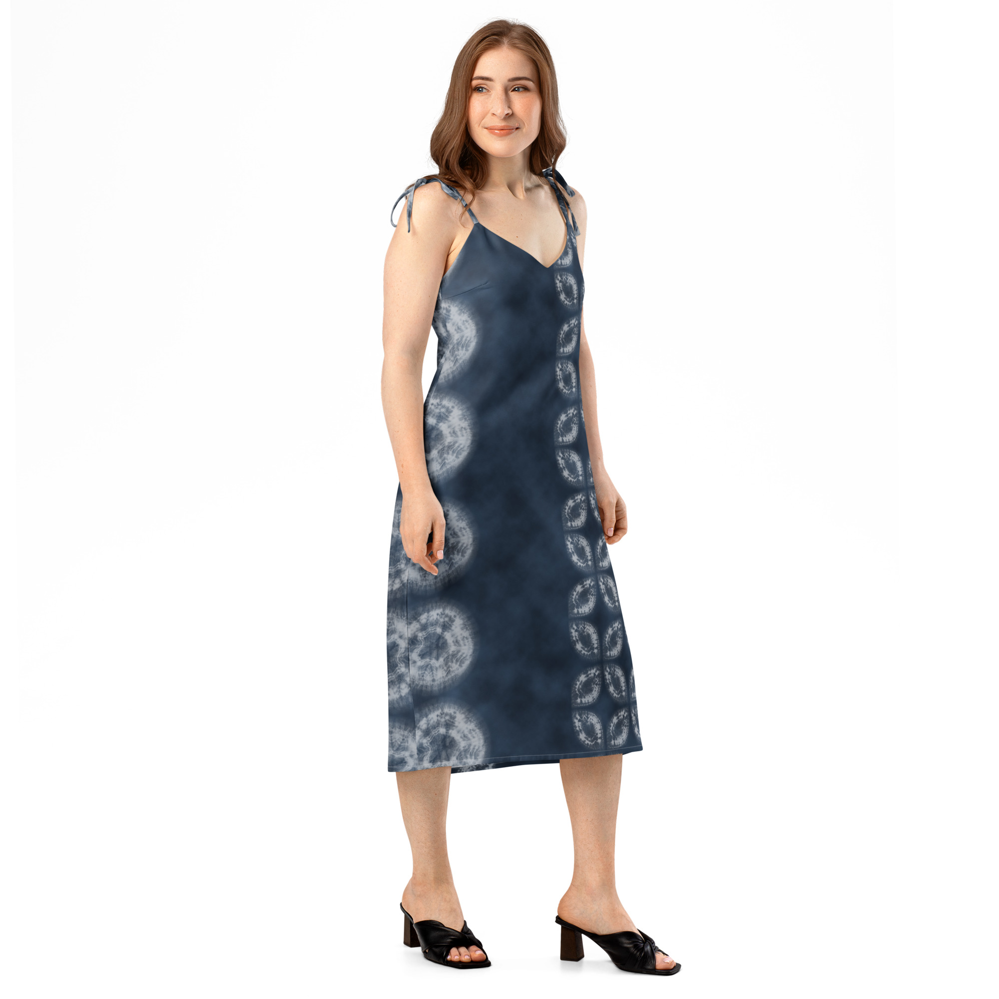 Deep Indigo Shibori-Inspired Slip Dress Monochrome All-Over Print