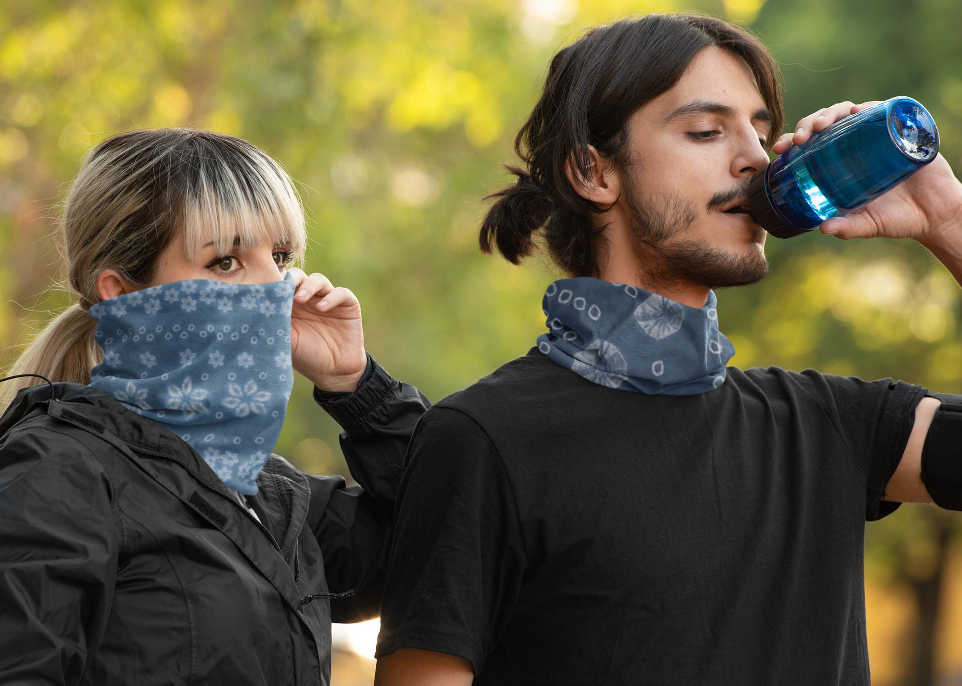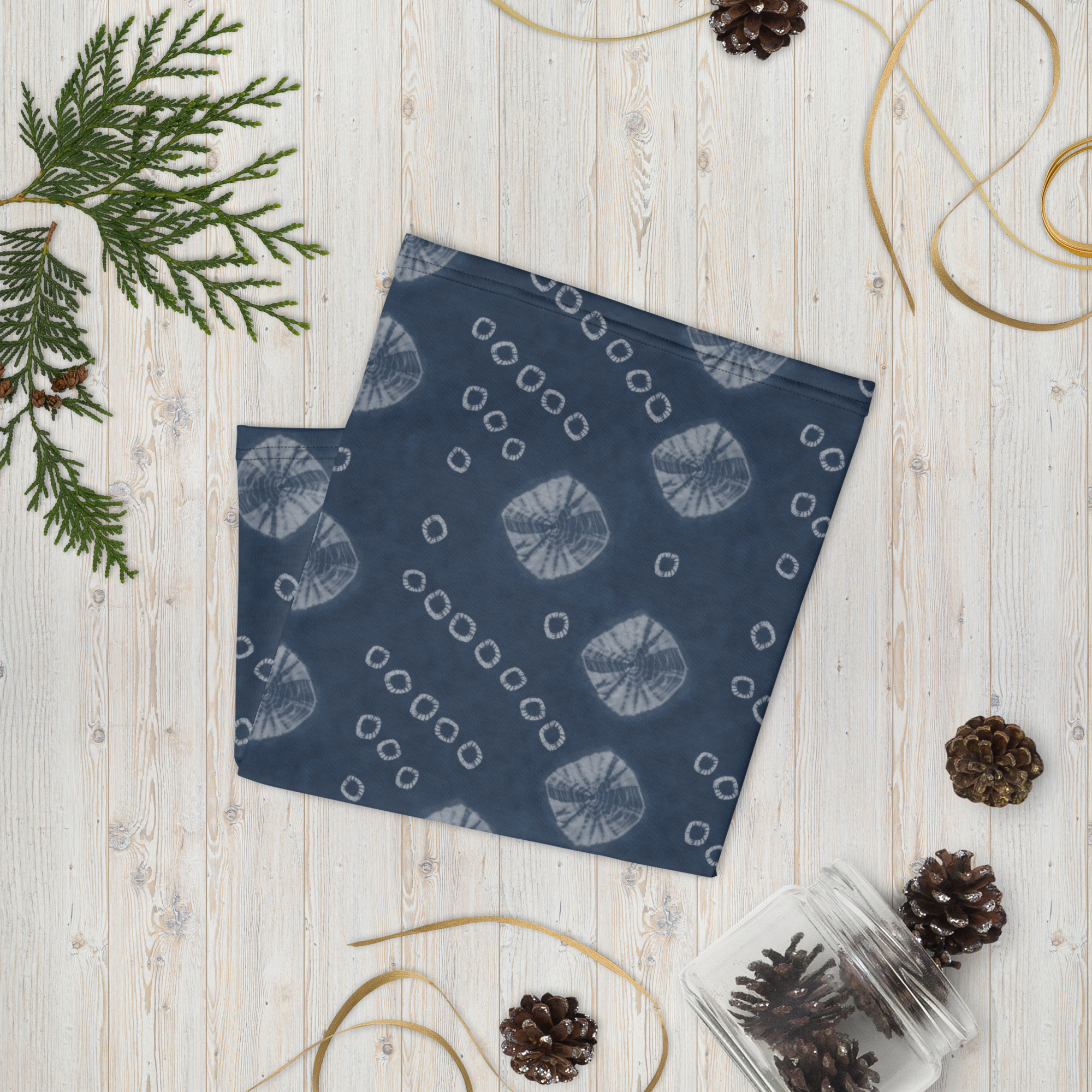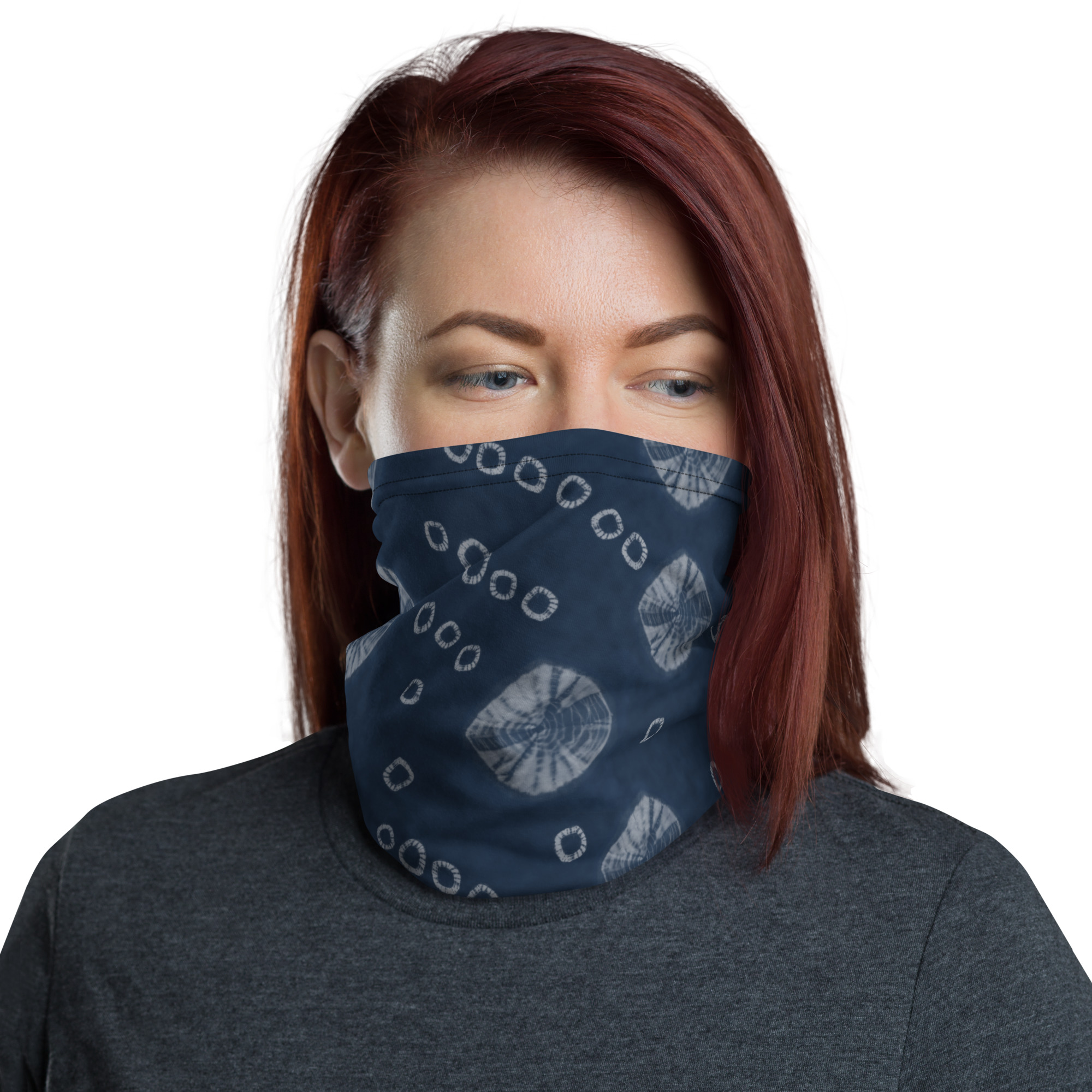 Inspired by traditional Japanese shibori dyeing, this indigo neck gaiter features an all-over pattern designed to recreate the organic depth and natural movement of hand-dyed textiles.