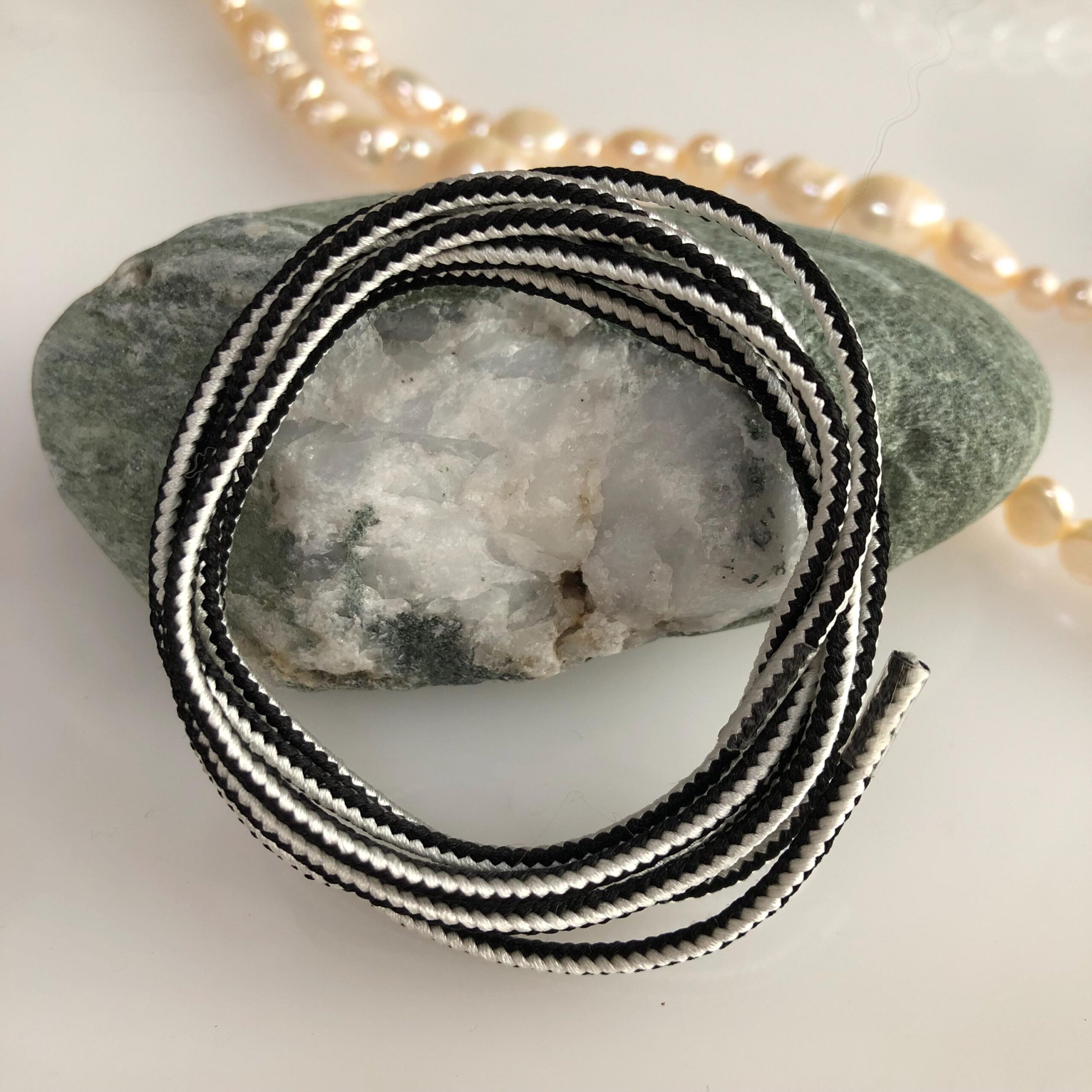 Premium 2mm square kumihimo cord featuring a striking vertical two-tone design. Handcrafted in Japan for refined jewellery making.