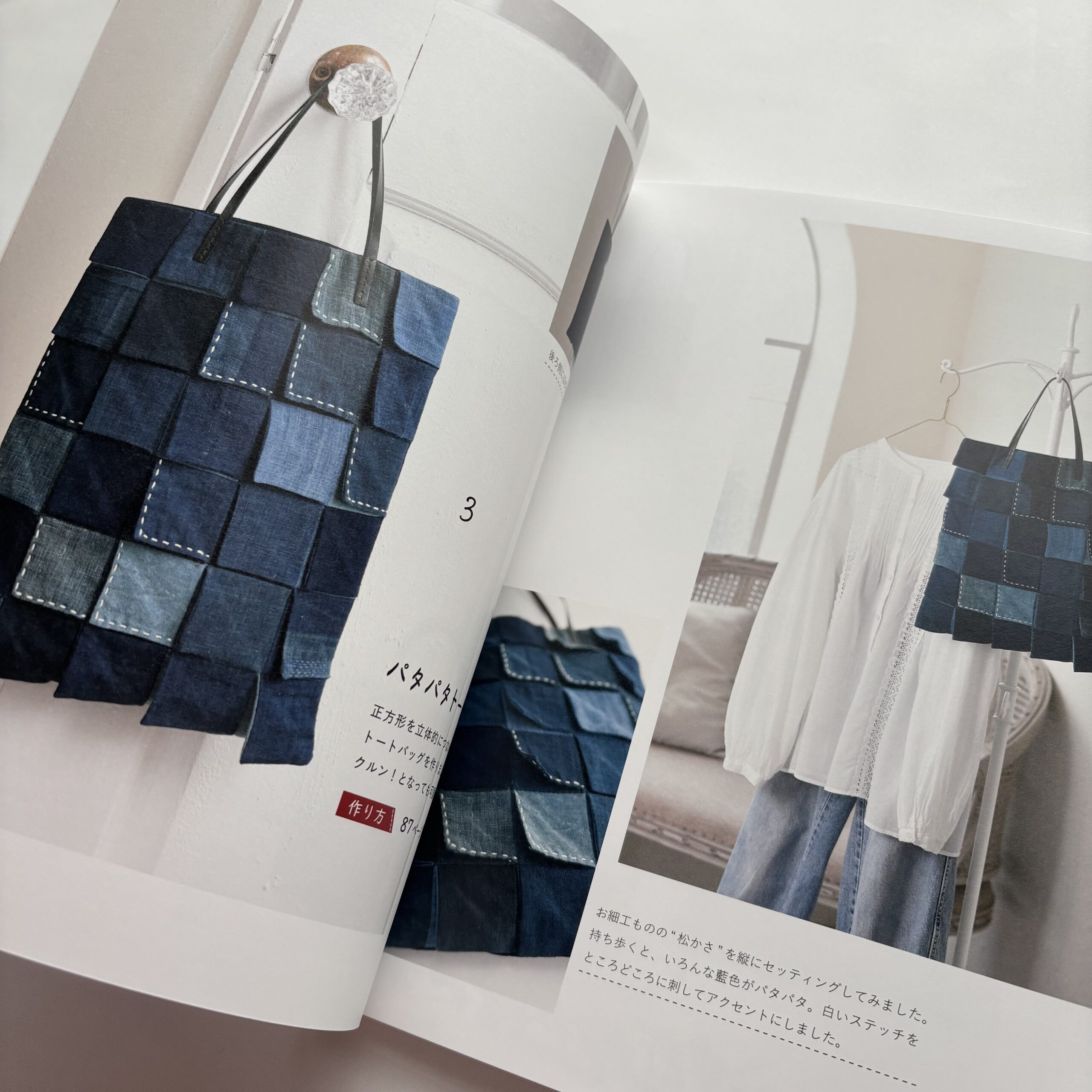 Japanese text · Photo-rich guide · Indigo textile bag projects