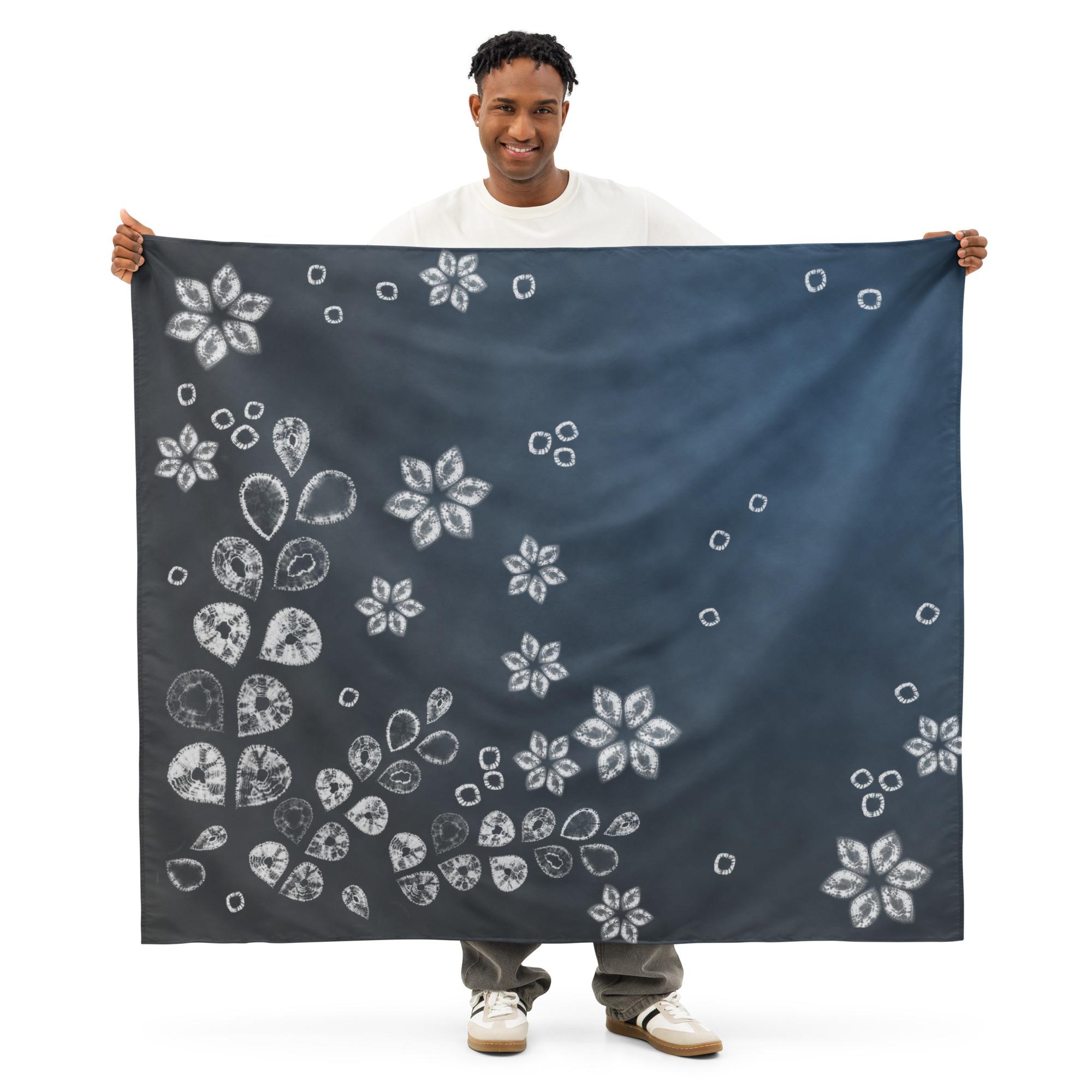 Transform your space with this indigo floral shibori wall art inspired by traditional Japanese dye techniques.