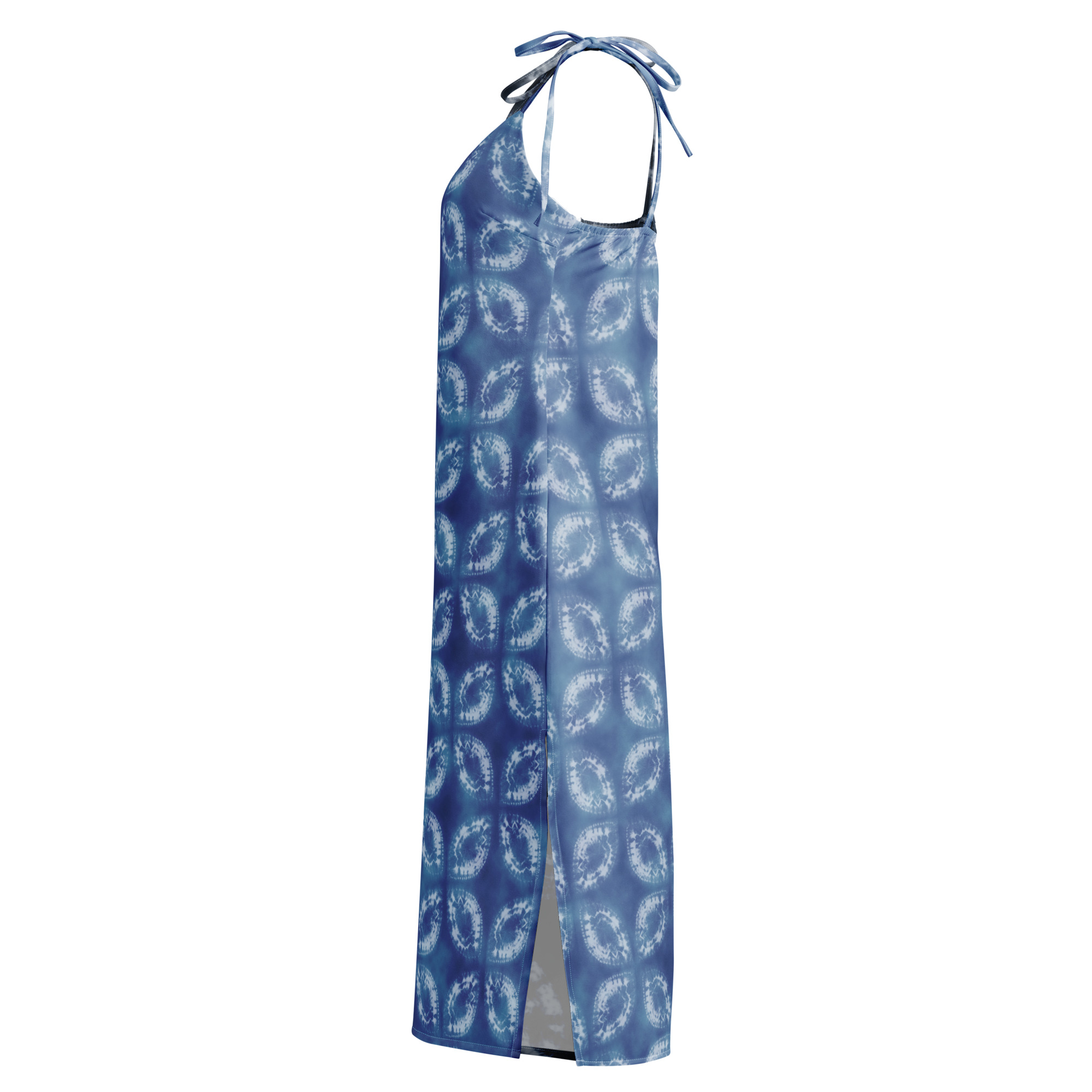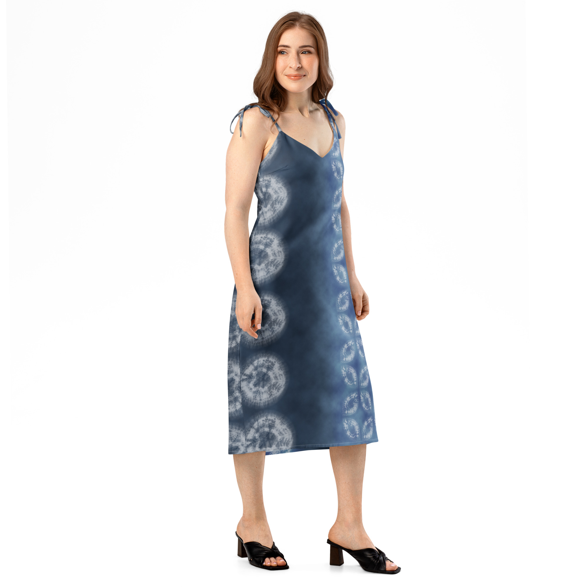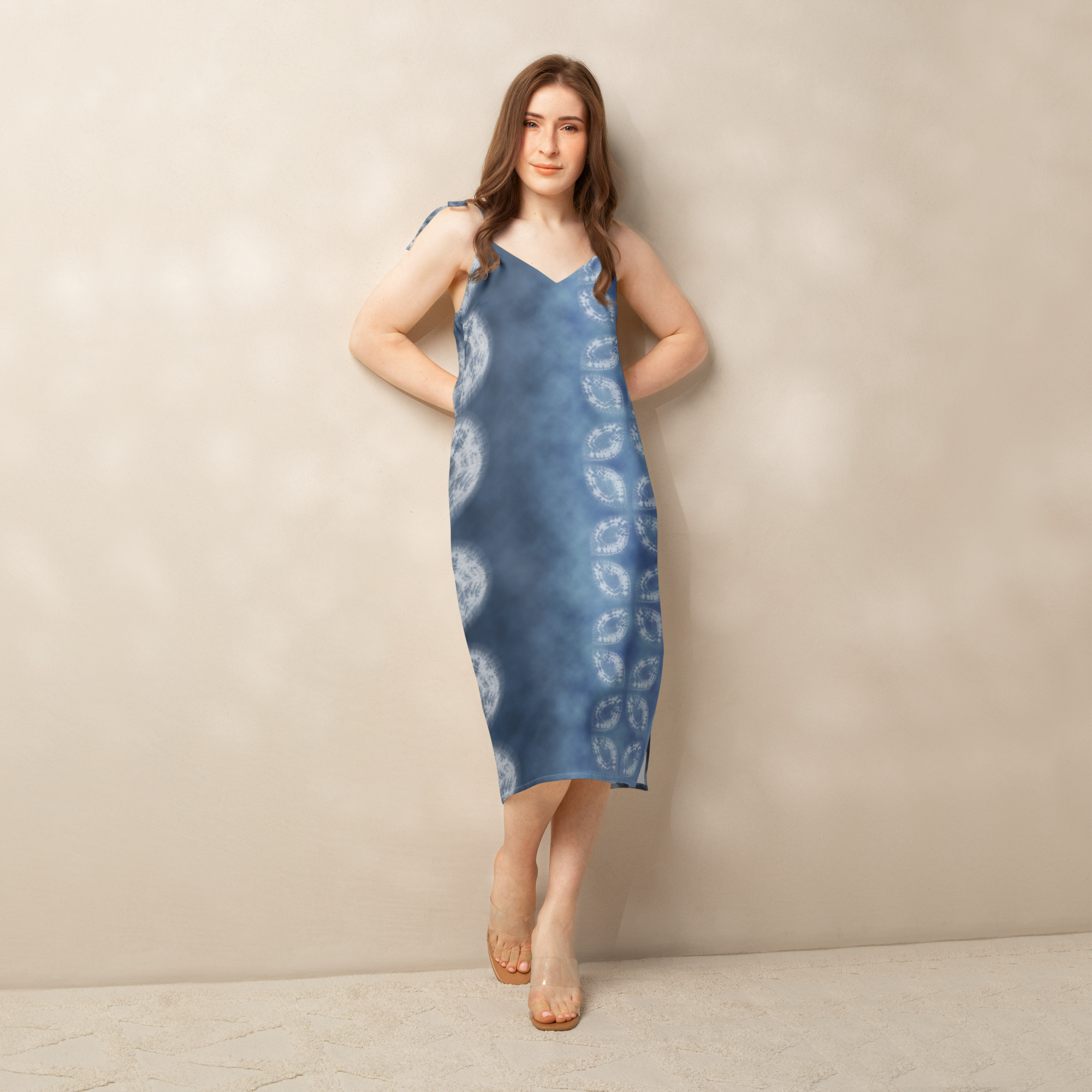 Indigo Shibori-Inspired Slip Dress Bold Gradient All-Over Print