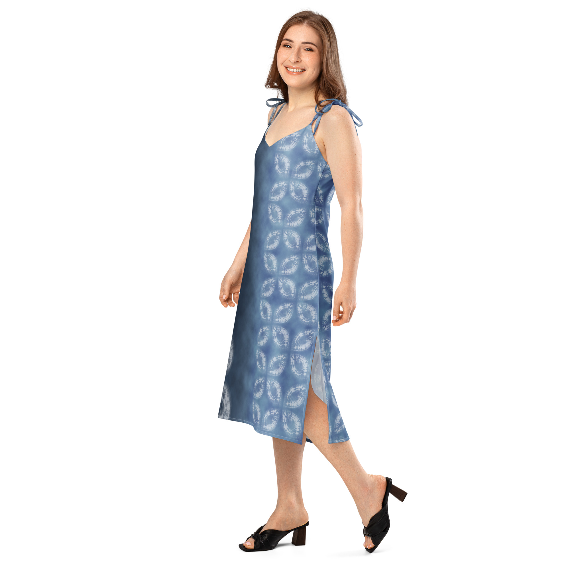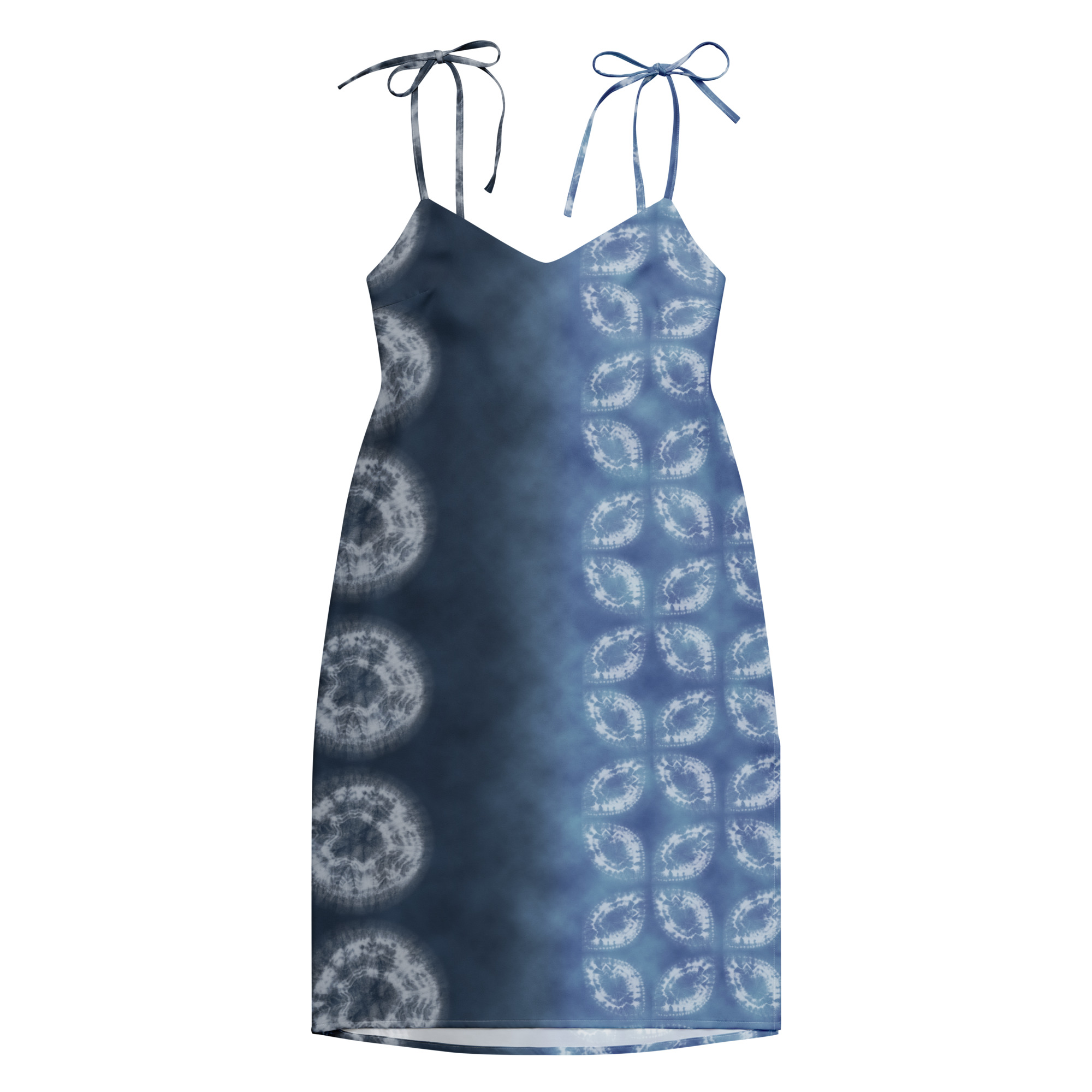Be the first to review “Indigo Shibori-Inspired Slip Dress Bold Gradient All-Over Print”