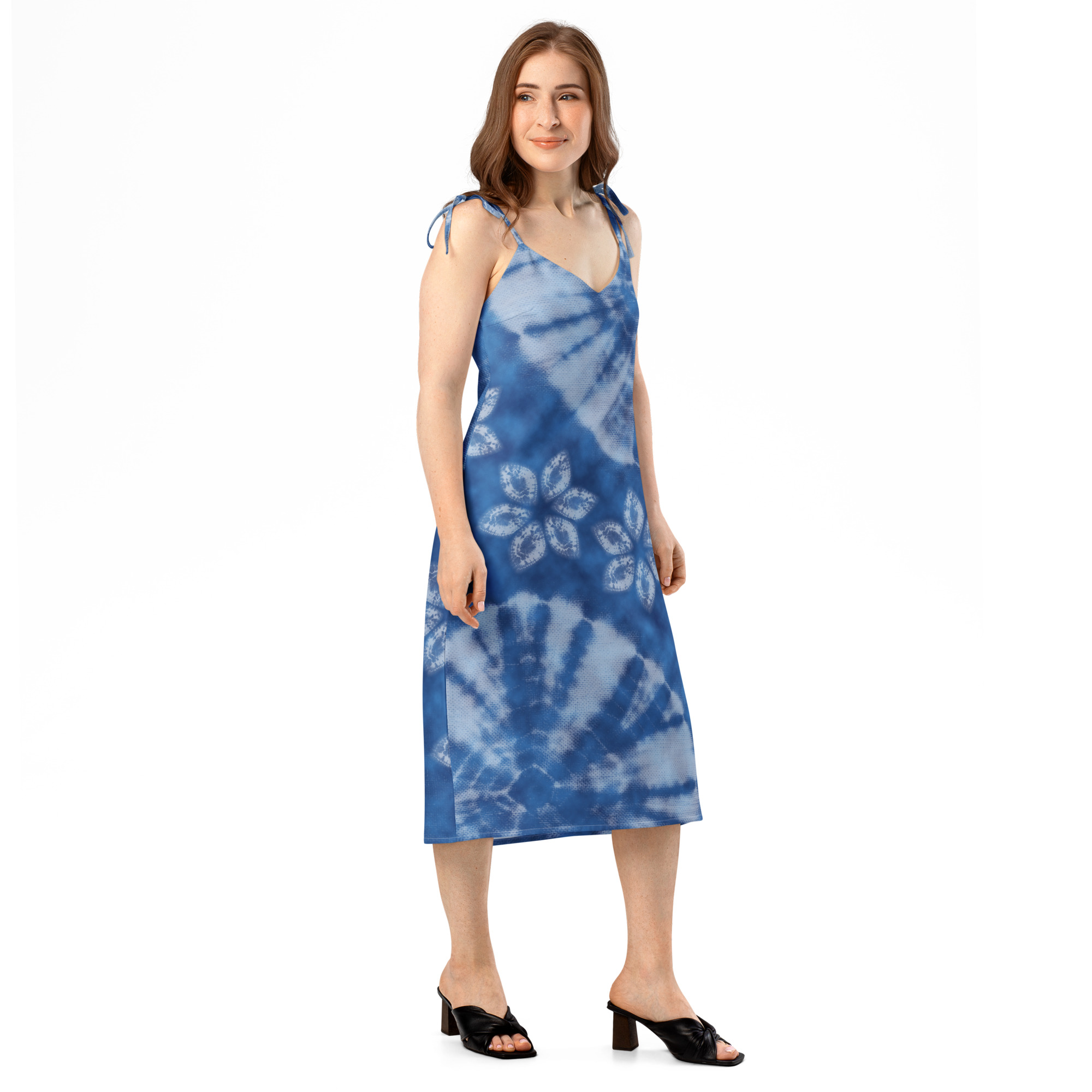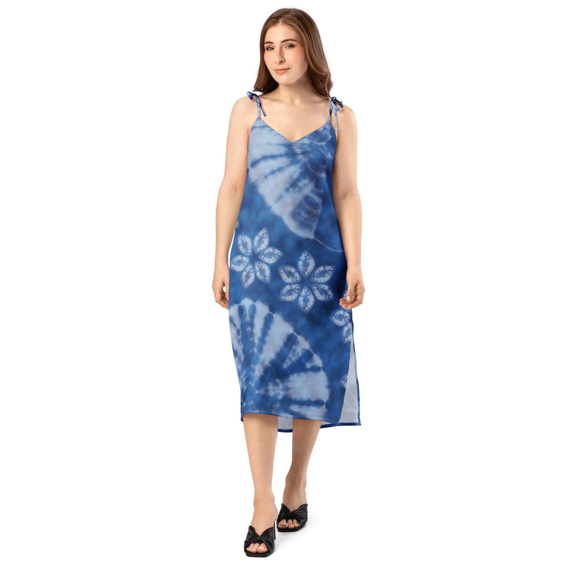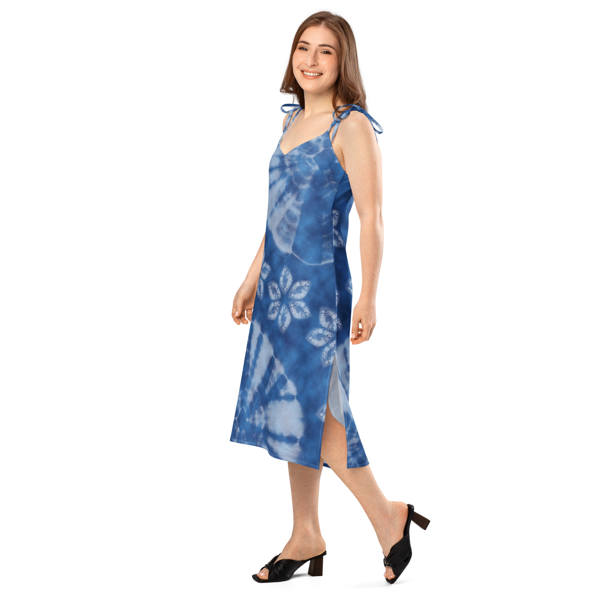 Floaty, flirty, and totally flattering—from daytime garden parties to dinner dates. This midi dress features a breezy side slit, adjustable tie straps, and a built-in bra for no-fuss style.