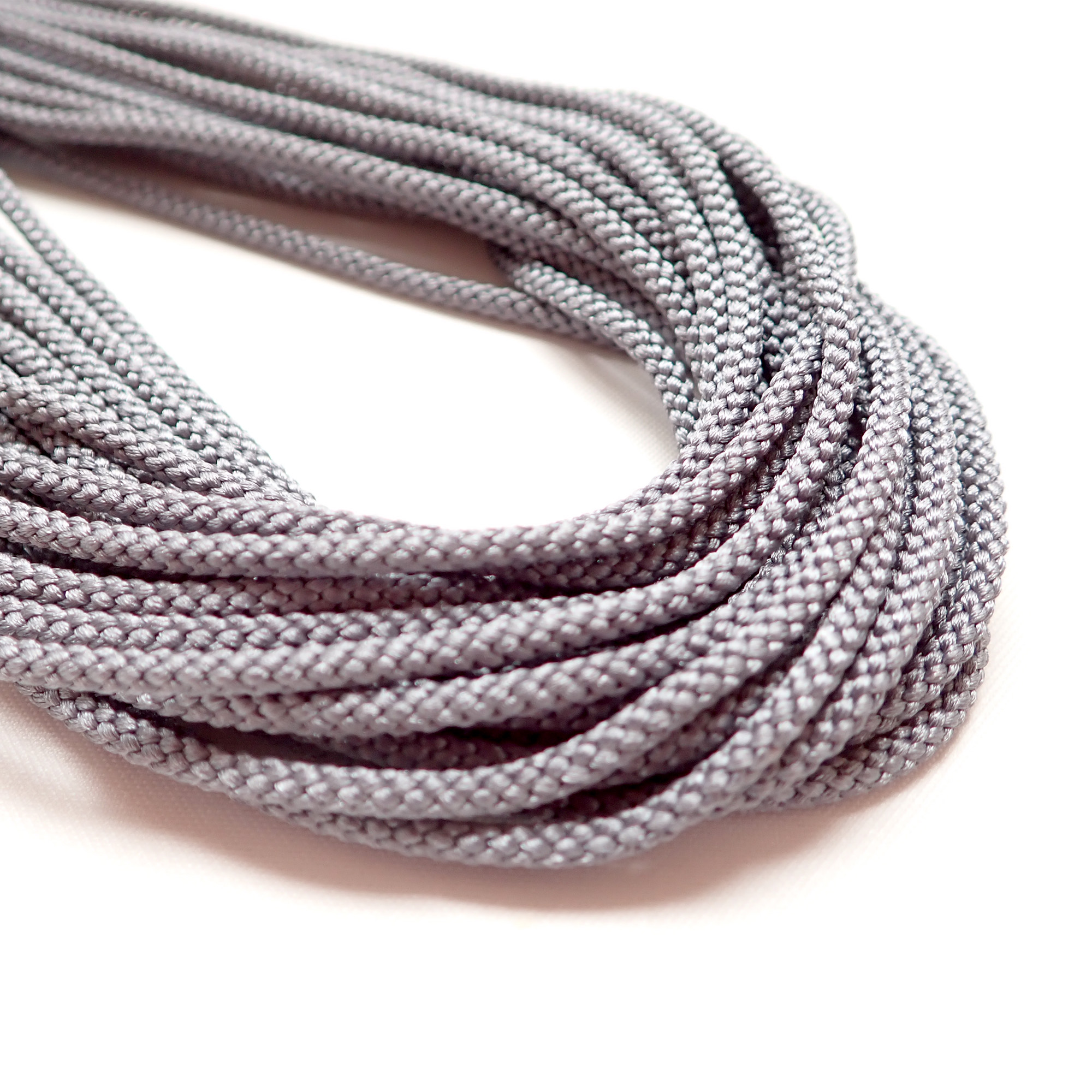 The filament structure reflects light softly and evenly, creating a refined, silk-like appearance without the variability often associated with natural silk. Compared to standard polyester cords, the surface appears smoother and less harsh, with improved visual depth.