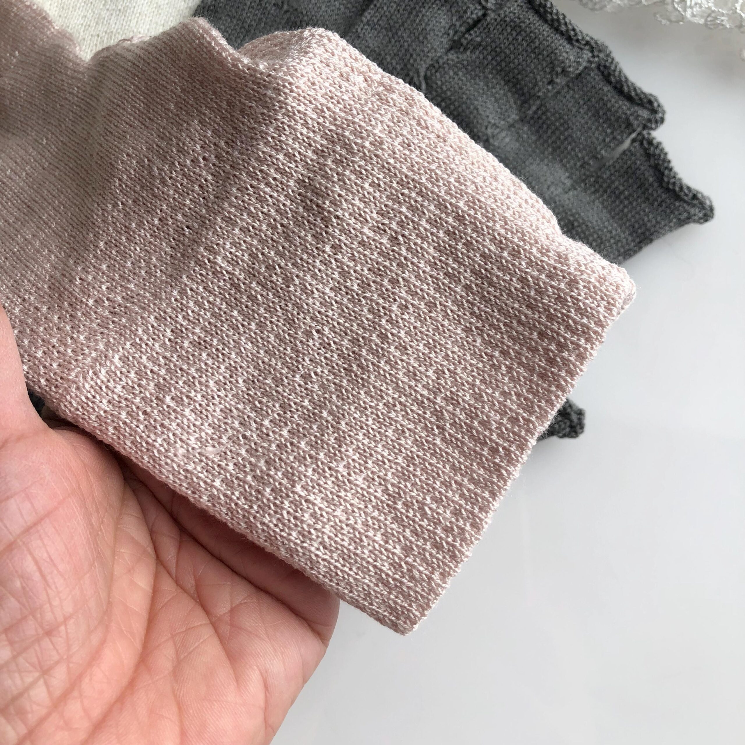- Loosely knitted with a relaxed gauge for a gentle and snug fit