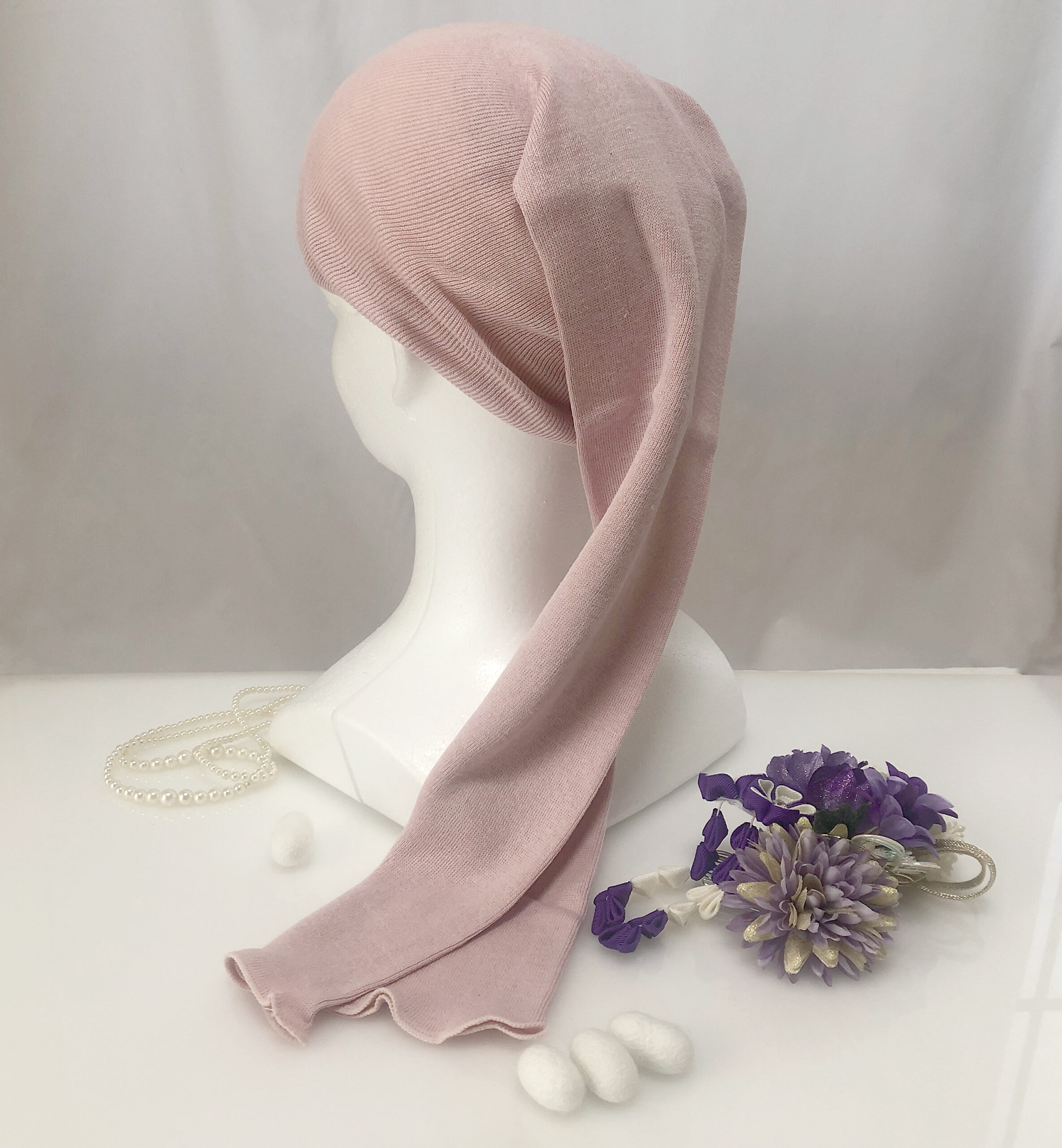 Silk Night tube Cap Pink from Silk Yarn Shop 100% Silk, Long Type | for long hair – Wake Up to Tangle-Free, Silky Hair / Japan